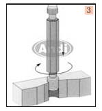 7、 取鋼絲螺套:在安裝過程中出現(xiàn)問題或者由于鋼絲螺套使用時間過久需要取出絲套,應當使用帶有刃的卸套工具對準螺套端口,用榔頭猛打一下,用手加力按下手柄反螺紋旋轉即可退出鋼絲螺套。