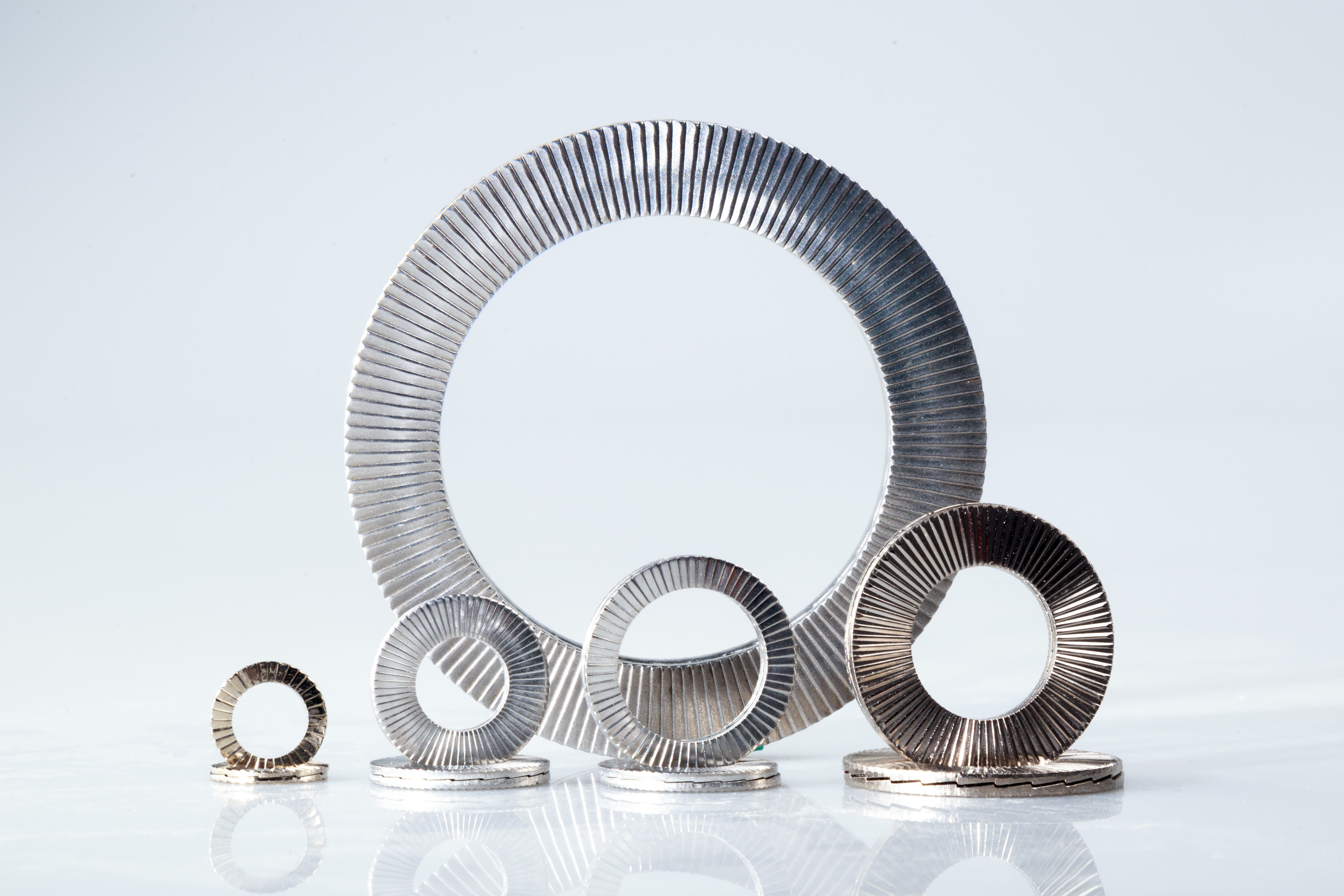 雙疊自鎖(鎖緊)墊圈DIN25201是由兩片內(nèi)齒面咬合組成,外側(cè)帶有放射狀的斜細面齒紋,內(nèi)側(cè)為大角度斜齒面。斜齒面的角度大于螺紋角度,當(dāng)連接件受到振動,螺栓連接會隨著持續(xù)振動發(fā)生松動趨勢,僅允許墊圈內(nèi)側(cè)的斜齒面會產(chǎn)生相對錯動,產(chǎn)生抬升張力,從而達到完全的防松效果。雙疊自鎖(鎖緊)墊圈利用幾何原理,安全鎖緊處于強烈振動的螺栓連接。 有以下幾個優(yōu)點: a.最高的安全性能? …