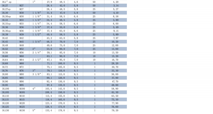不銹鋼墊圈(EN 1.4404 / AISI 316L),DL3SS—DL42SS(標準尺寸)和DL45SS—DL80SS(根據要求定制)。